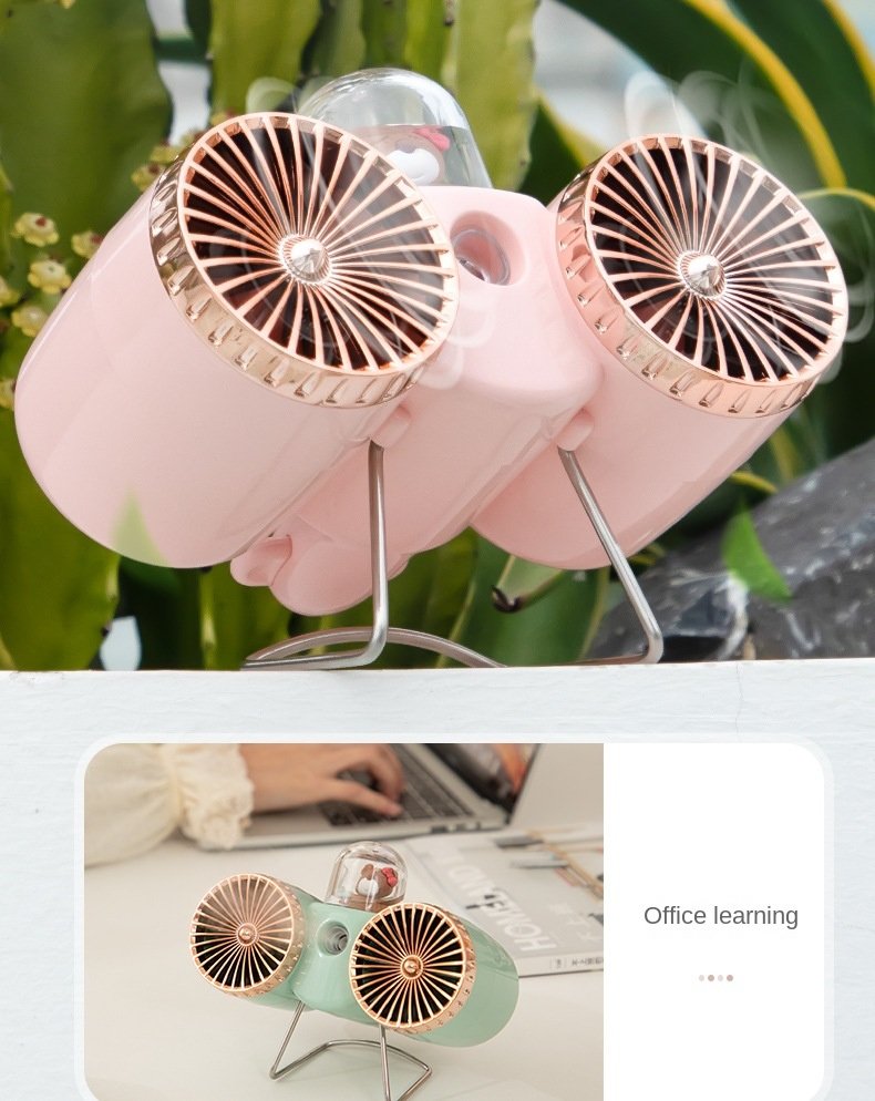 1pc Dual-head desk Fans; fanLithium Battery Sunset Double Head Spray Fan DM-33A Configuration Charging Line - Light Pink