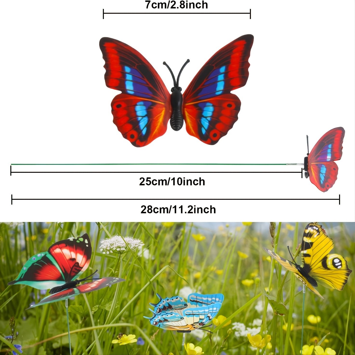 PREMIUM MATERIALS : Garden decoration butterfly is made of Quality waterproof pvc material; heat and cold resistant; which adds a little beauty to your garden all year round.VARIETY STYLES : 30/50 butterflies of random colors will be put in a package; all kinds of designs and colors match the flowers in the garden; you can also use them indoors to add a lovely look to potted plants.SUITABLE SIZE : The width of the butterfly is 2.8"; the length of stake is 10"; enough for you to tie them to tree