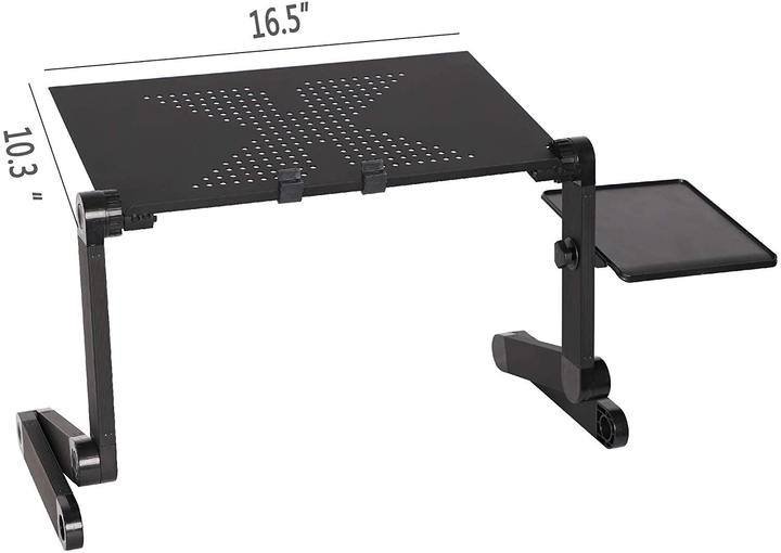 Height and Angle Adjustable:This Laptop Stand with adjustable auto-locking joints which can adjust and lock in any height and angle you need.You just need to press the button on the side of the stand, set the angle, then release the button, it will auto-locked.Adjustable Mouse Pad can be used on both left & right side.