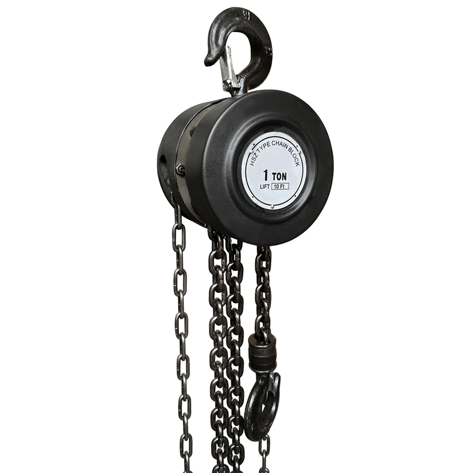 [CHAIN HOIST SPEC]- This hand chain hoist has a capacity of up to 2,000 lbs/1 Ton, and a max capacity of 2,756 lbs/1.25 Tons. Chain lift and fall height is 10 ft/3 m, which is more than enough for most industrial applications and daily use. It can lift heavy items in different sizes.