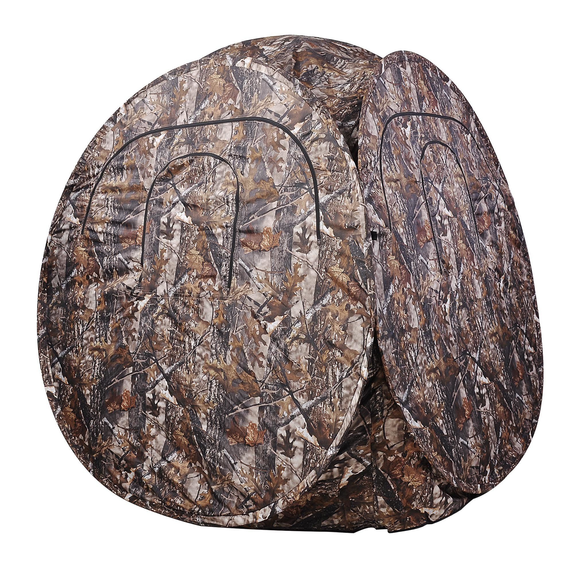Enhance Camouflage for Hunting - Vivid tree and leaf pattern for maximizing the camouflage of hunting blind tent; blending into most outdoor surroundings seamlessly; black interior for blocking sunlight