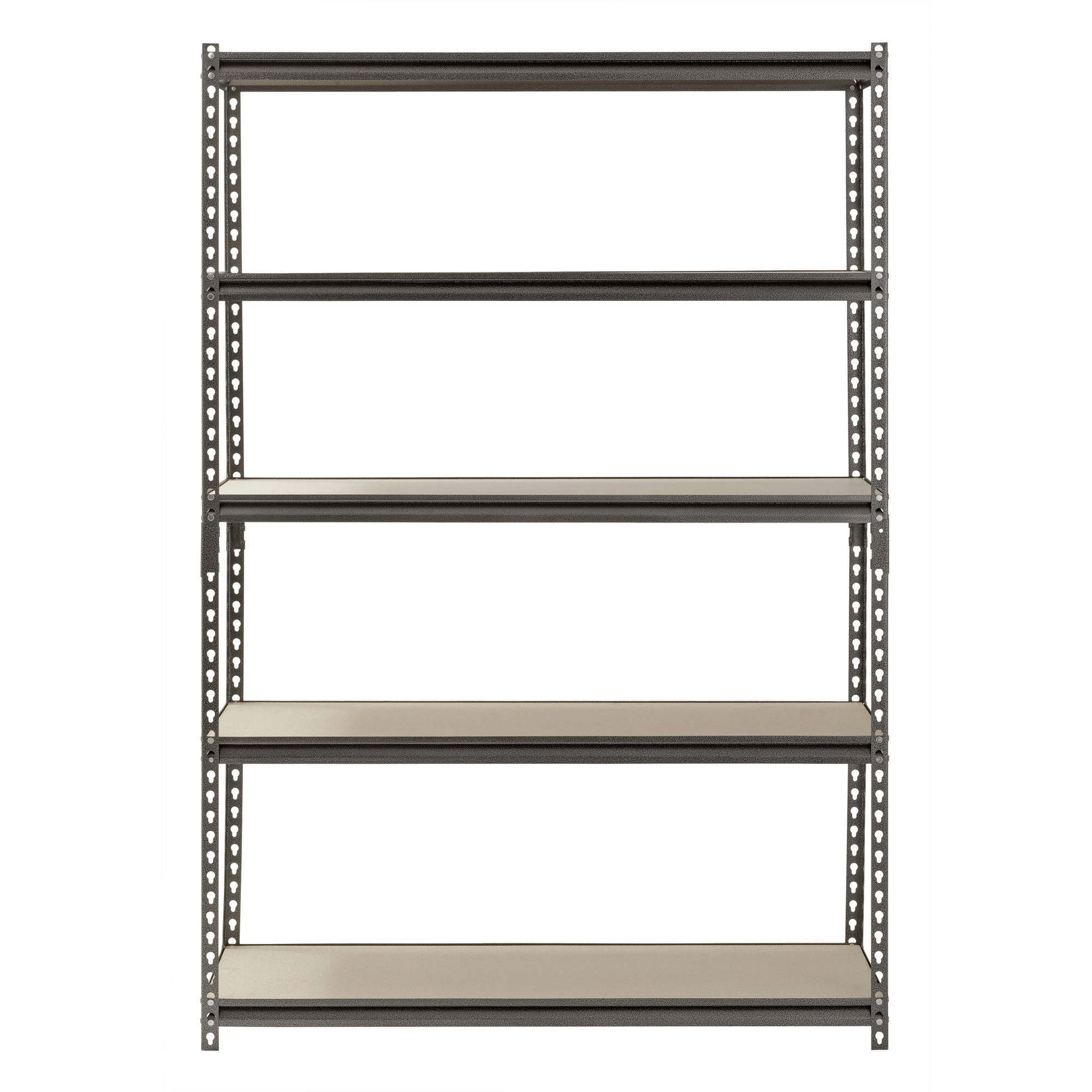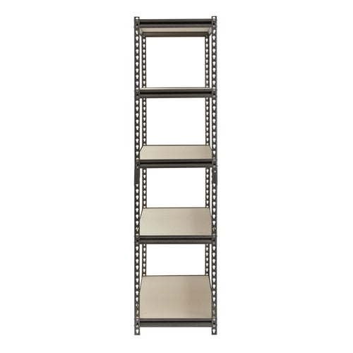 The Muscle Rack heavy-duty 5-shelf steel shelving unit with its patented Z-Beam design and attractive silver vein finish is the perfect storage solution for organizing bulky items in your basement, workshop, garage, business or anywhere you need heavy-duty vertical storage. Its sturdy frame has a powder coat finish that resists abrasion, chipping and corrosion for lasting strength and durability. This versatile shelving unit can store a variety of items, large or small, with the convenience of shelves that are adjustable every 1.5 inches. Heavy items are no problem; each sturdy particleboard shelf holds up to 800 pounds of evenly distributed weight. The rack's modular design allows the unit to be assembled vertically as a single shelving unit or horizontally for a 2-piece workbench style unit. The rack's boltless design and included post couplers allow you to assemble it in just minutes with no nuts or bolts.