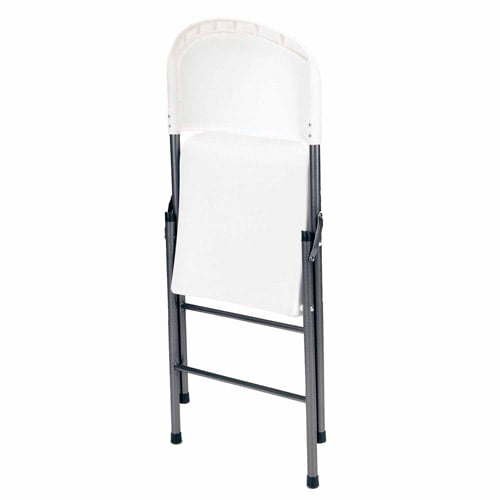 Premium Resin Chairs add extra seating when you have guests or host a party. These resin chairs easily fold up for convenient storage when not in use. Bring them out when you have extra visitors, and use either indoors or outside. The contoured seats and backs make the chairs comfortable and supportive. They feature tube-in-tube and cross-brace construction for a reinforced frame that provides added durability and stability. The white speckle resin folding chairs include a vein powder-coated finish. These Premium Resin Chairs are ideal for use in a small house or apartment where seating is limited or when you host large events in your home.Premium Resin Folding Chair, 4-Pack, WhiteTraditional armless steel and resin folding chairRubber-capped feet help protect floors2 cross-brace constructionFolds for storageFully molded contoured seat and backLow maintenance and durable vein powder-coated finishDimensions: 20.90"L x 19.70"W x 32.80"HWalmart warranty applies to chairs set of 4Model# 14867WSP4E