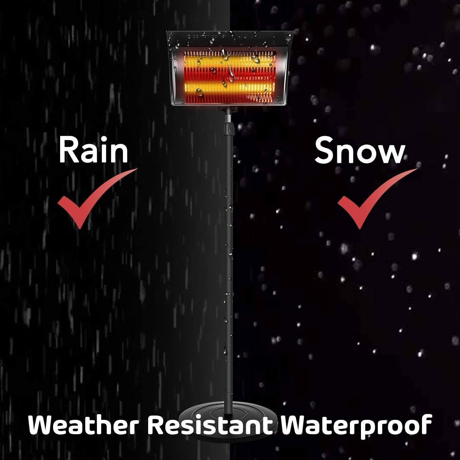 • Perfect for Indoors and Outdoors: Built-in carbon fiber heating tube, the infrared heater is efficient and saves energy. The waterproof and Standing design allows it to be installed in Balcony, Courtyard, Garage, Patios and restaurants, so your winter is no longer cold.