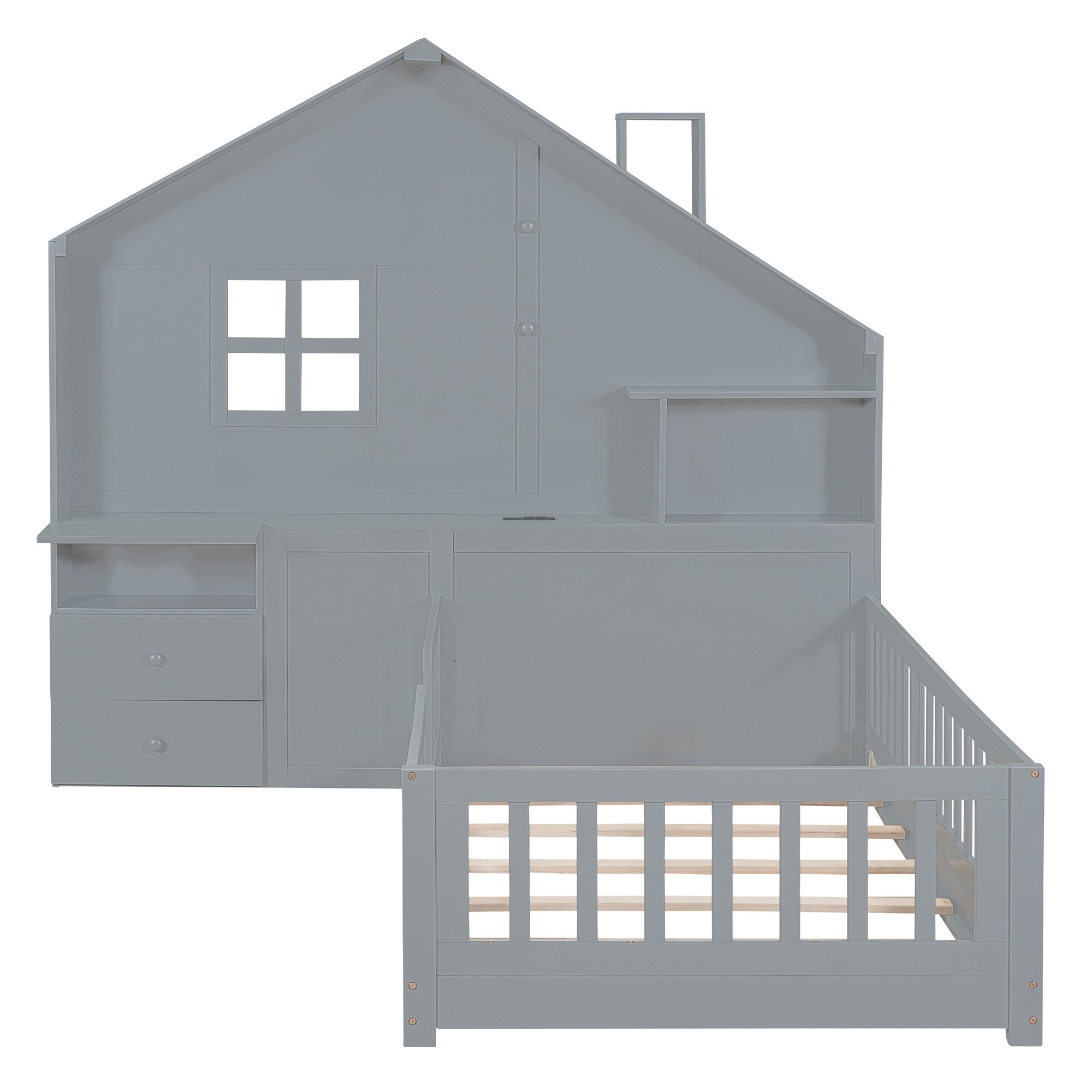 With a design of window and roof, this house bed brings artistic atmosphere to your home.The design is romantic and can make you feel easy and comfortable.This bed provides a fun and adorable place for you to enjoy yourselves.Three bedsides drawers can provide enough space to stock your clothes, books and toys.And a set of sockets and USB port helps you eliminate the hassle of having nowhere to charge your phone or other electrical appliances.Anything in need can be put on the shelves, it is easy for you to access them.The bed goes well with all styles of home decor and completes the look of any bedroom.