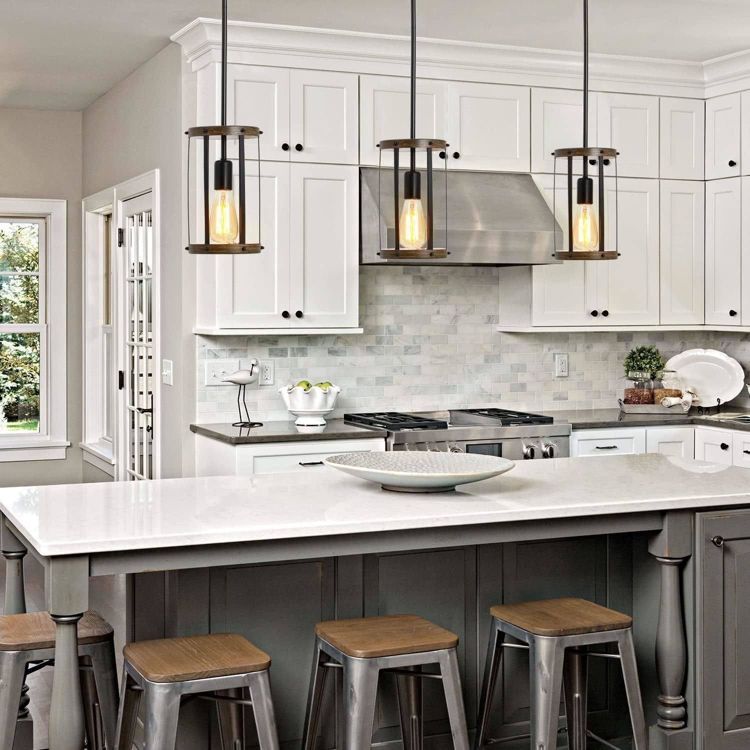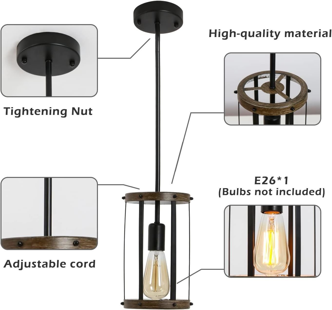 Adjustable Height The farmhouse pendant lighting fixture allowing you to adjust the hanging height to your preferences and design. The maximum height can be adjusted to 39.37" inches(ceiling plate to the bottom of cage shade), you can choose the suitable height for your different lighting needs.