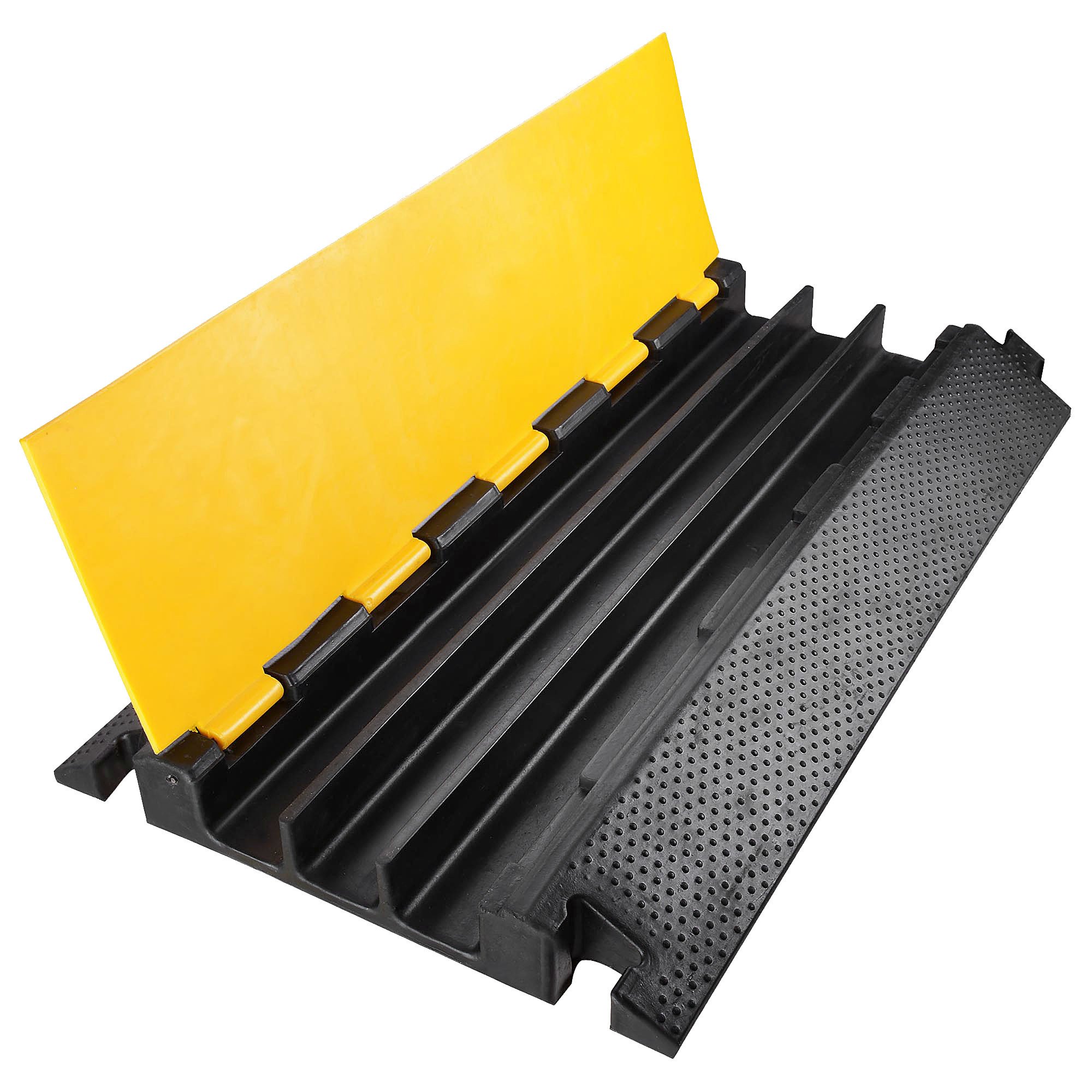 - 3-Channel Cable Protector - This 36"x20"x3" 3-Channel Wire Cover Ramp with extended space to cover & store cables, electric wires, hose & cords for full protection from being run over by car & water damages, ideal for parking lot, warehouse, hotel, stage, shopping mall, construction places, etc.