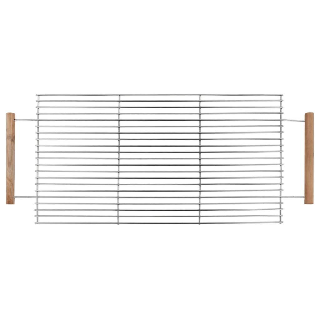 This stainless steel BBQ grill has a sleek look and will be an eye-catching addition to your parties. The cooking grid is made of chrome-plated steel and equipped with sturdy wooden handles on both sides. Height of the cooking grid is easily adjustable. In addition; the wooden side shelf and bottom shelf keep spices and food handy.